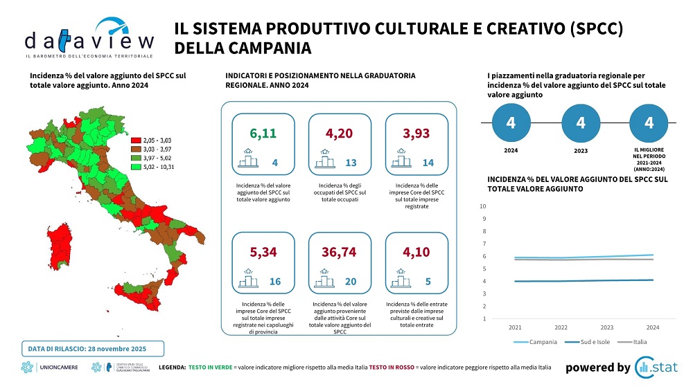 Dataview è il servizio gratuito di informazione economica-statistica realizzato dal Centro Studi delle Camere di commercio G. Tagliacarne. Lo strumento ha l’obiettivo di fornire periodicamente un set di informazioni statistiche territoriali in formato infografica pronto per la consultazione.