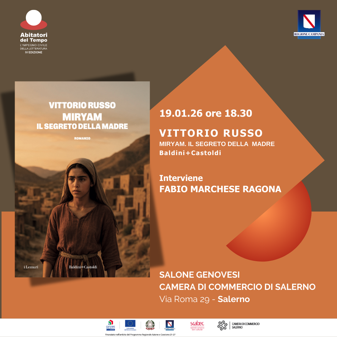 Lunedì 19 gennaio, ore 18.30, presso il Salone Genovesi della Camera di Commercio di Salerno (via Roma, 29), Vittorio Russo, insieme a Fabio Marchese Ragona, vaticanista Mediaset, si addentrerà tra le pagine di “Miryam. Il segreto della madre”, (Baldini+Castoldi),